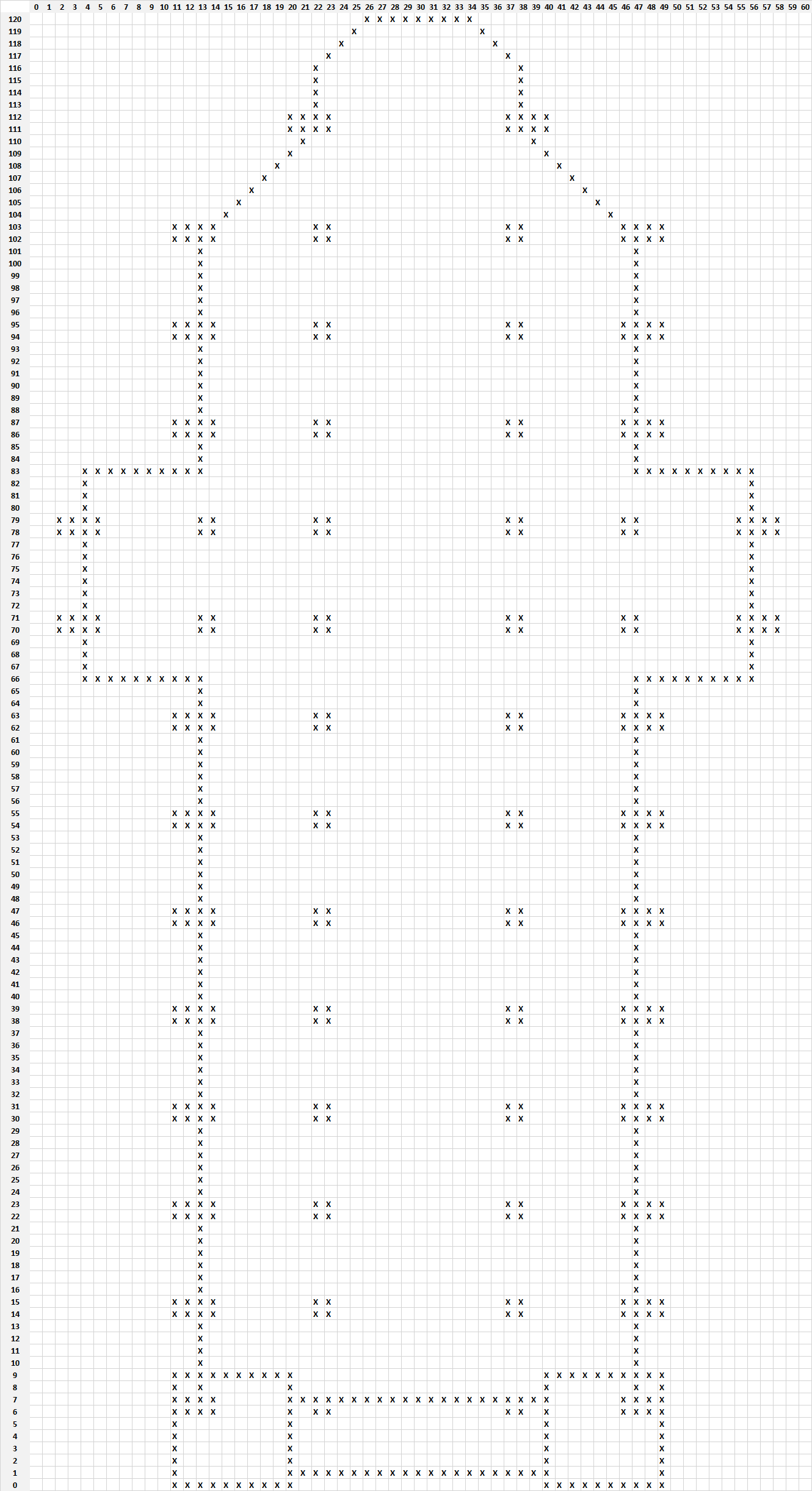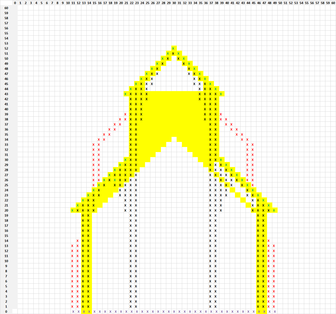 The most difficult part of development was populating the structure array in the defineStructure function. To keep my ideas organized, I drew the cathedral layout in several Excel grids.