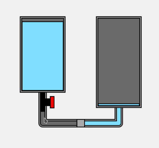 The problem with communicating vessels is that overall, the water level in the system will decrease due to gravity, which limits gameplay possibilities. To spice things up a bit, I implemented a faucet system that triggers indirectly when a certain water level is reached in a tank. This allows the game to be more dynamic and more engaging.